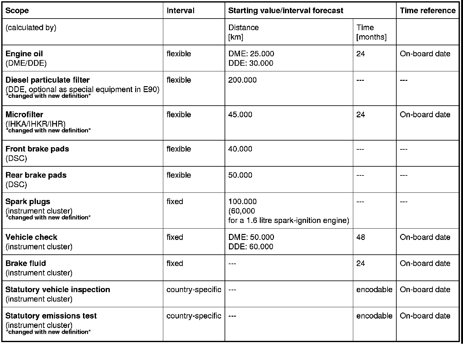 The distance-dependent and time-dependent interval for the vehicle check is managed in the instrument cluster (48 months and DME: 50,000 km, DDE: 60,000 km).