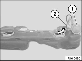 In so doing, press tab (2) against spring force in order to make it easier to feed sensor unit out of tank.