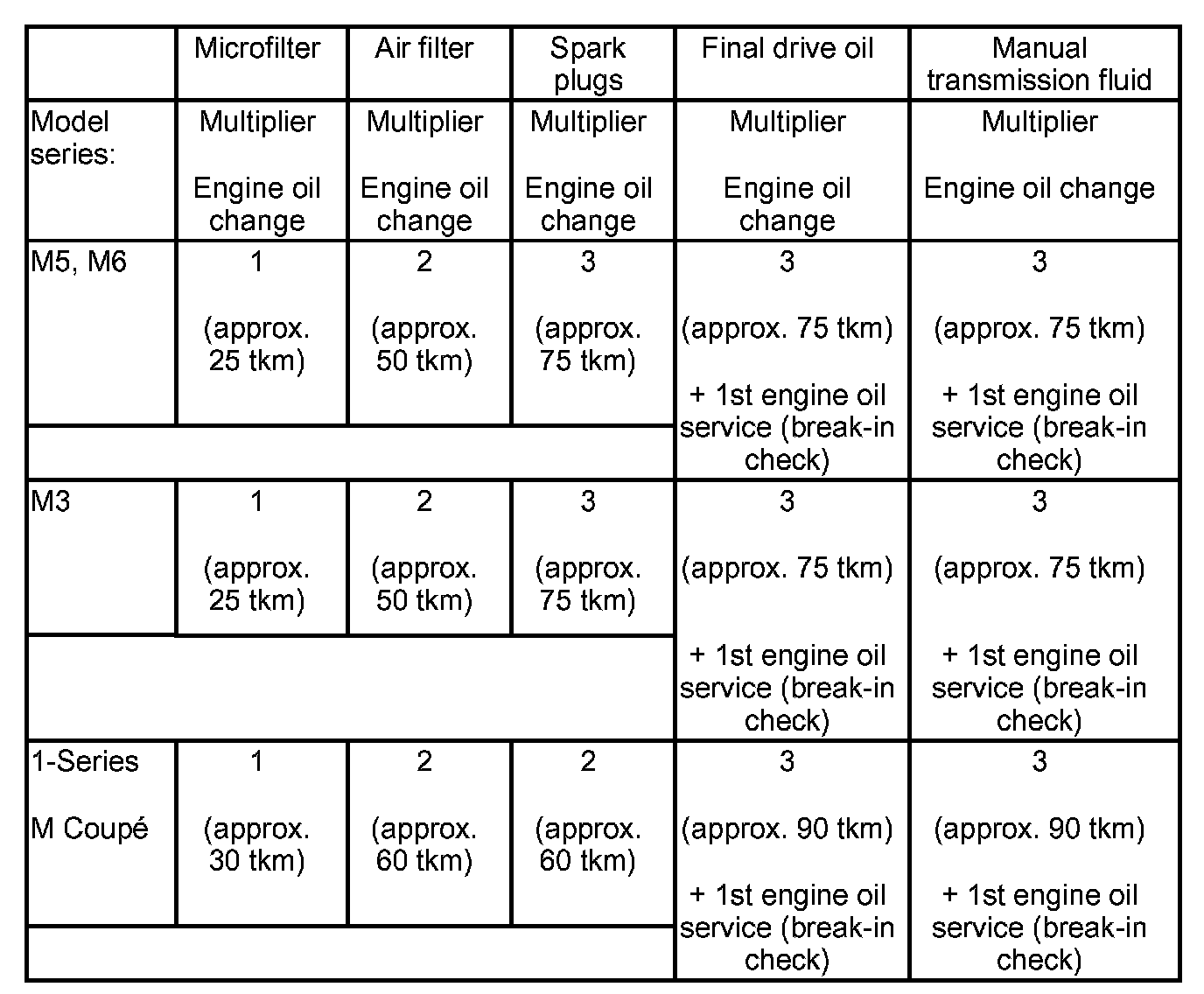The change interval (motor oil change multiplier) can be taken from the following matrix: The vehicle-specific scope must be read out via ISPA (Key Reader) and printed out.