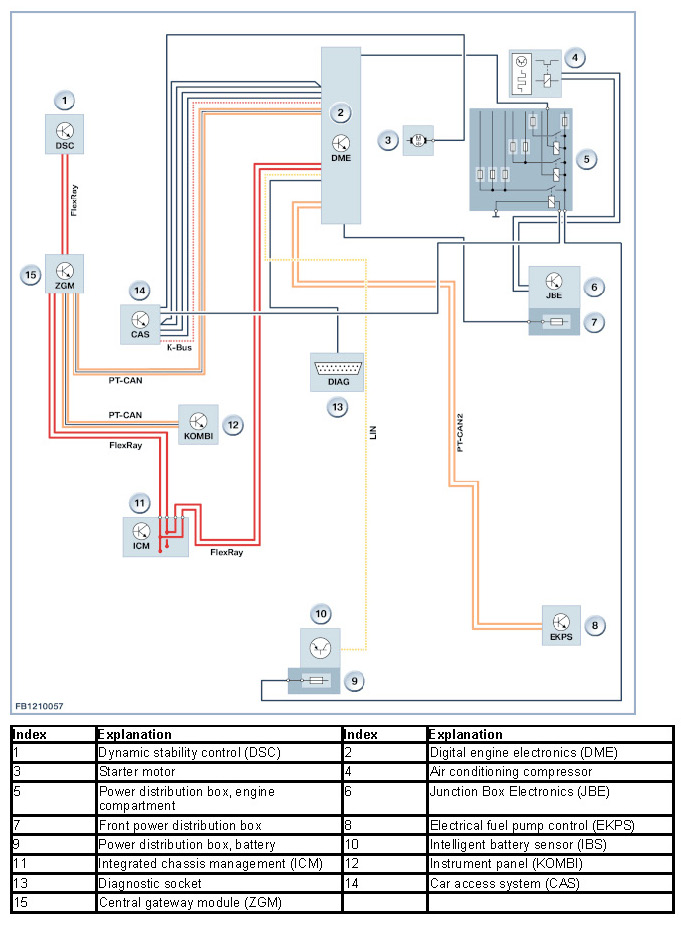 Communication between the Digital Engine Electronics (DME) and the intelligent battery sensor (IBS) as well as the alternator takes place across the serial data interface. The information from the intelligent battery sensor (IBS) is used to calculate the state of charge and age of the battery in power management.