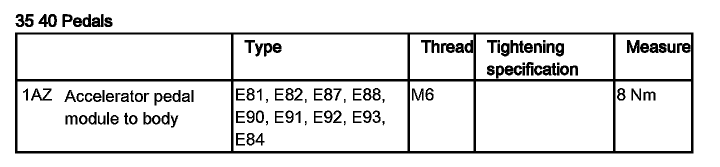 Accelerator Pedal: Specifications