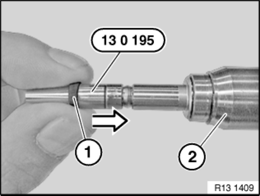 Slide new PTFE sealing ring (1) onto mounting taper 13 0 195.