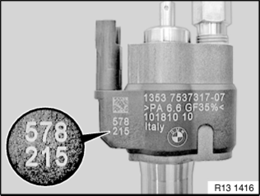 - For each replaced injector, the adjustment value must be entered according to the installation position (cylinder).