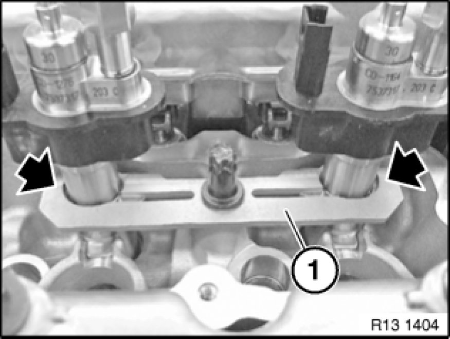 - Clean contact surfaces of uncoupling elements (2) in cylinder head.
