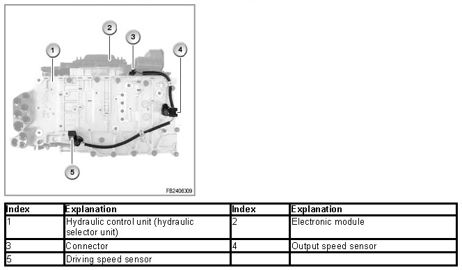 The output speed is proportional to the driving speed and is measured by the Hall sensor on the output flange of the gearbox. The EGS control unit adopts the engine speed and, together with the load signals, calculates the required gear change.