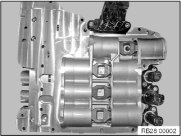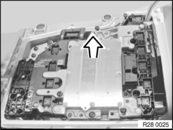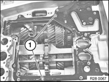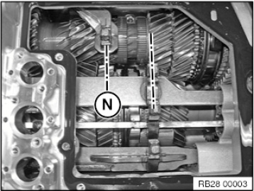 In the gearbox, the gearshift rods have to be set to the neutral position �(N) as shown here before the new mechatronics are installed.