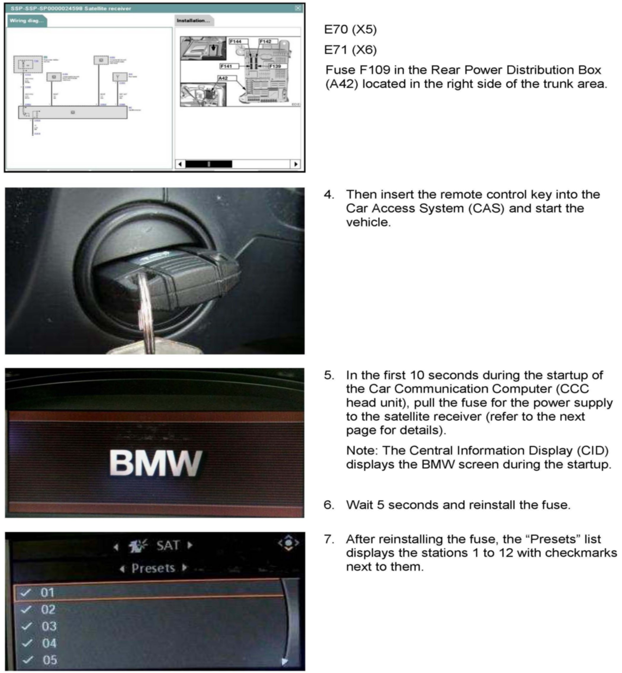 All vehicles equipped with option 609 Navigation System Professional, CCC) and option 655 (Satellite Radio)
