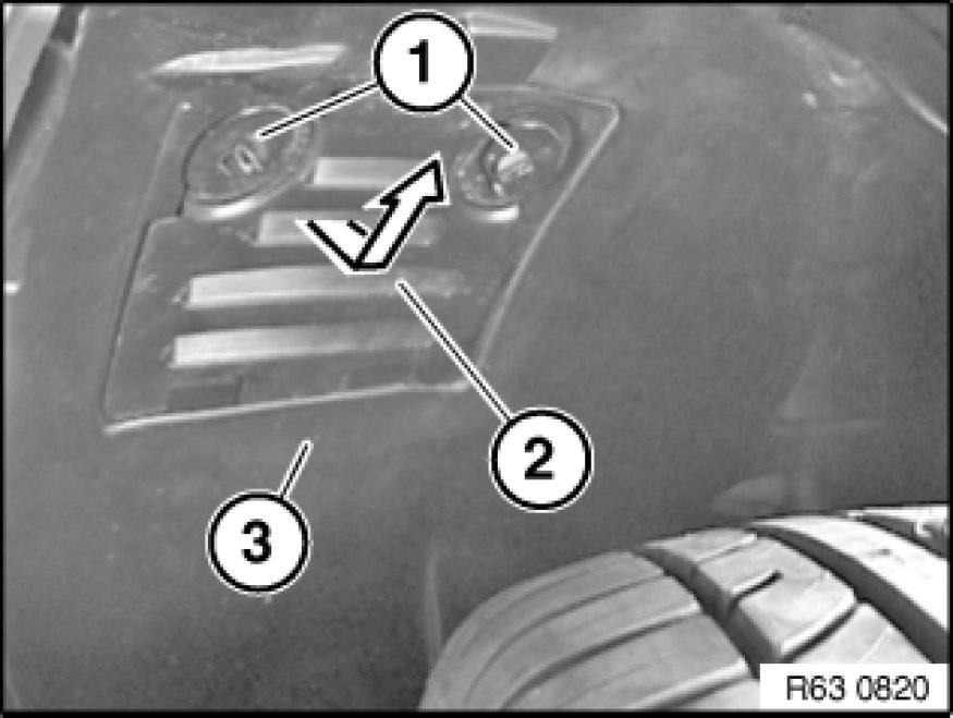 Feed flap (2) in direction of arrow out of front wheel arch cover (3) and remove.