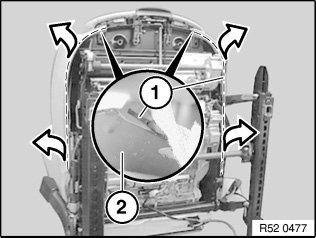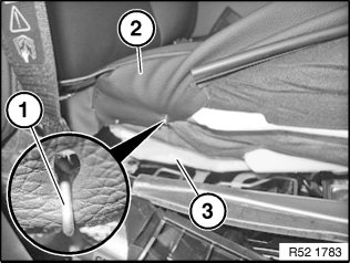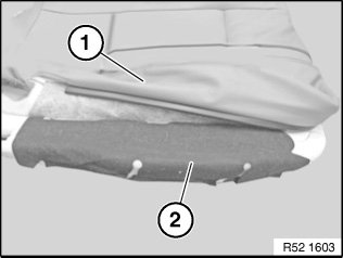 Partially lever out cover welt (1) from seat frame (2) (on side section, exit side).