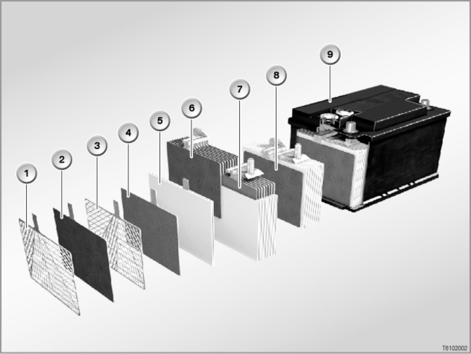 Instead, the sulphuric acid is 100 % bound up in glass fibre fleece mats (separators). Thus, no acid can escape if the battery housing is damaged. In addition, the AGM battery is sealed gas-tight. This is possible because the gases are converted back into water as a result of the separator permeability.