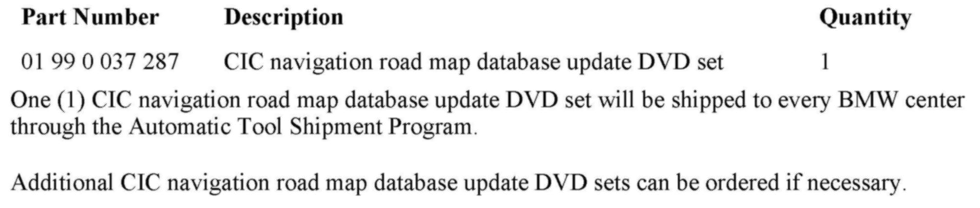 When requested by the customer, the Car Information Computer (CIC) road map database can be updated using a DVD set. However, this is not a warranty matter, and the customer should be charged accordingly.