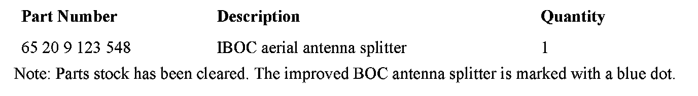 Parts stock has been cleared. The improved BOC antenna splitter is marked with a blue dot.