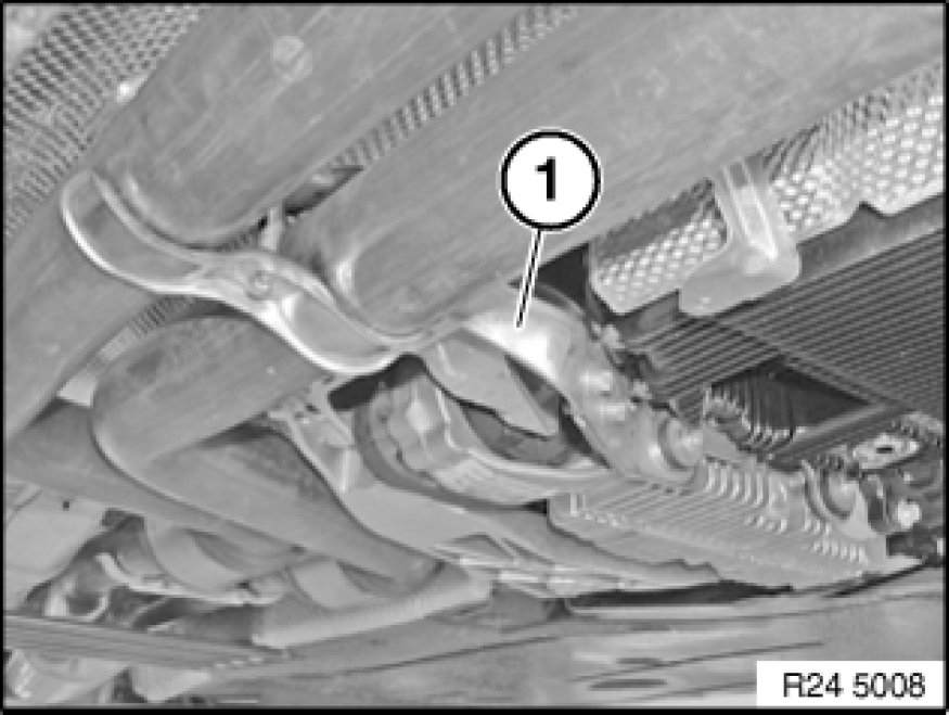 Remove exhaust system bracket (1).