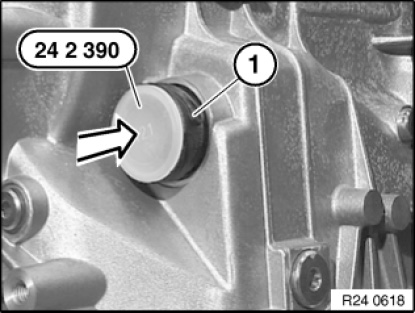 Insert special tool 24 2 390 in sealing sleeve (1).