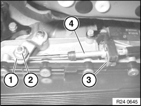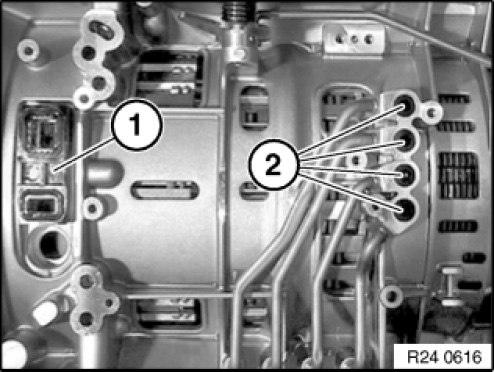 Check gaskets (1 and 2) for damage, replace gaskets if necessary.