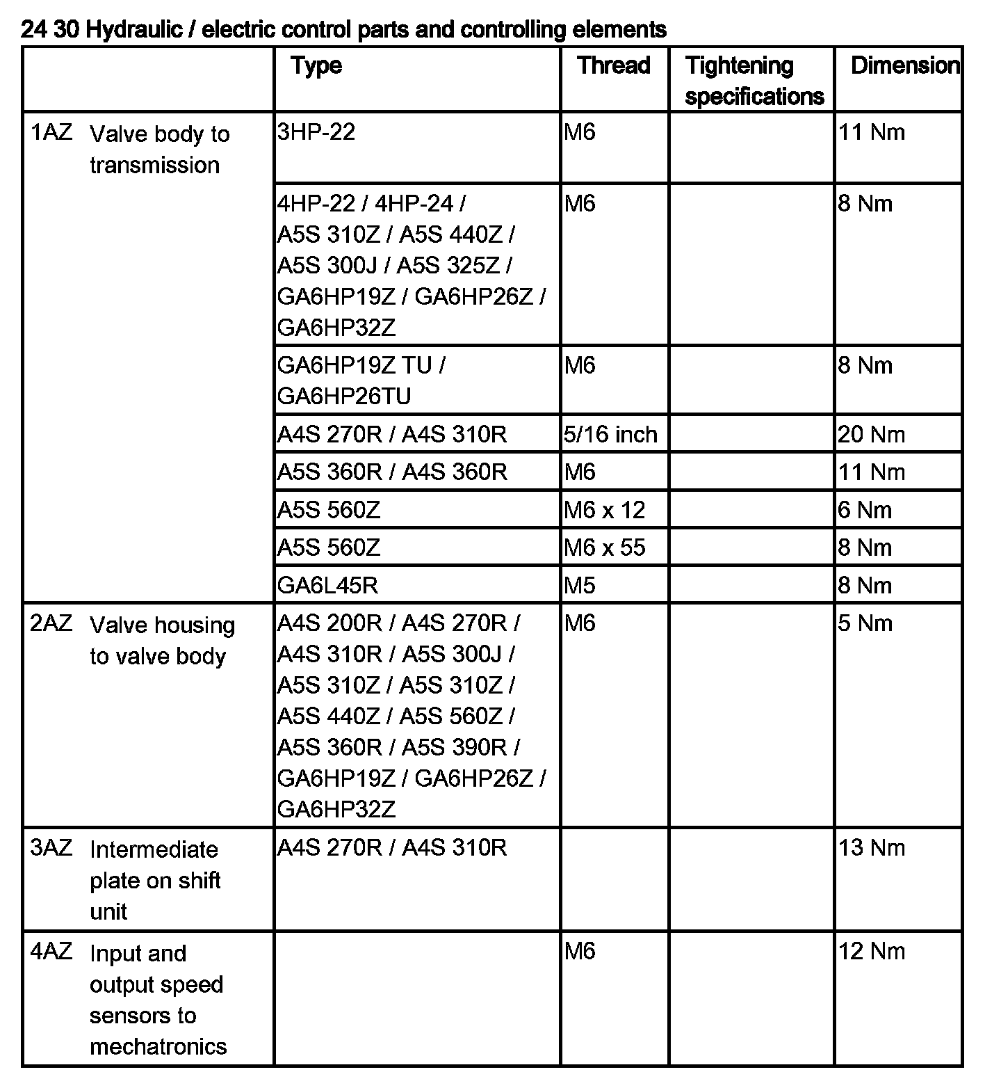 Tightening torque 24 30 1AZ.
