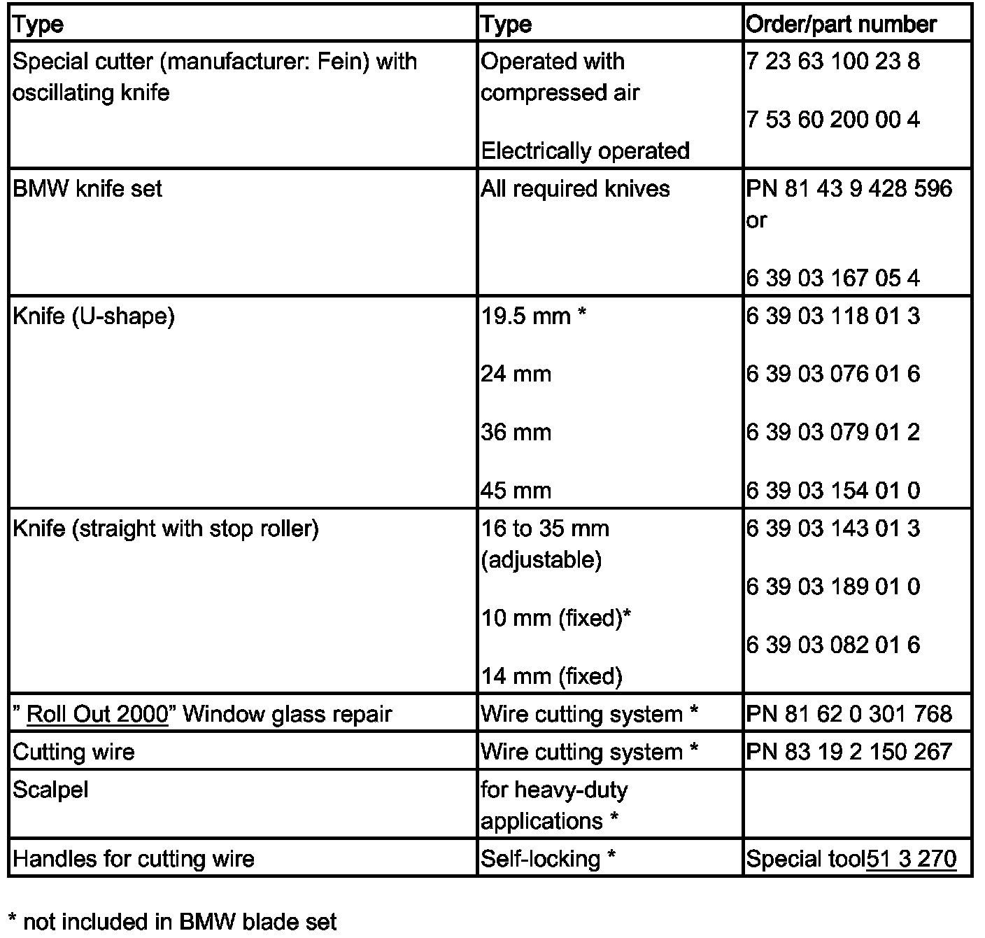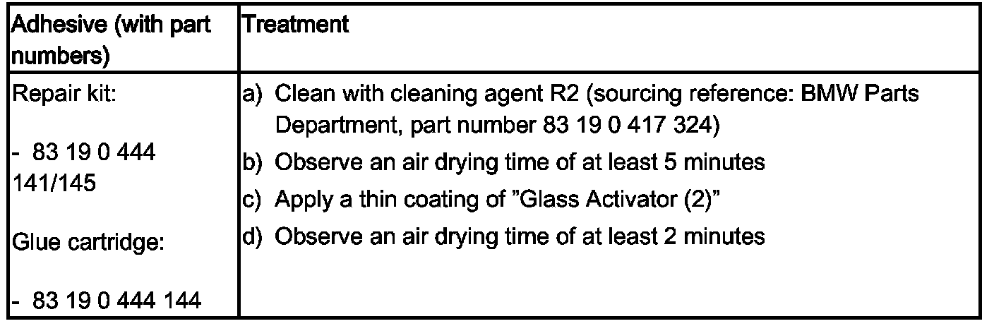 - 1-day system: Window glass adhesive (Part number 83 19 0 444 144*)