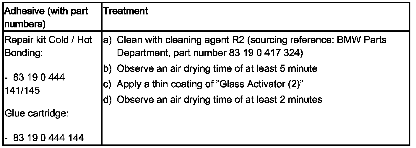The BMW-approved bonding agents must be used to treat adhesive areas: