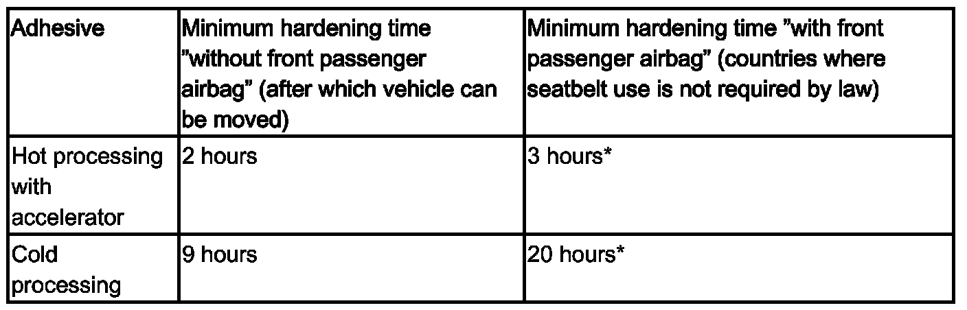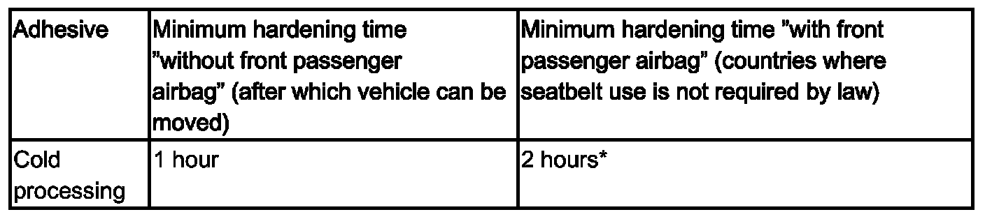 The vehicle can be handed over to the customer after the hardening time (vehicle can be moved, adhesive-dependent) with the following warning: