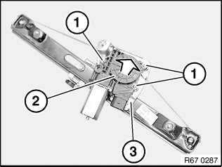 Release screws (1) and detach flat motor (2) from power window unit (3).