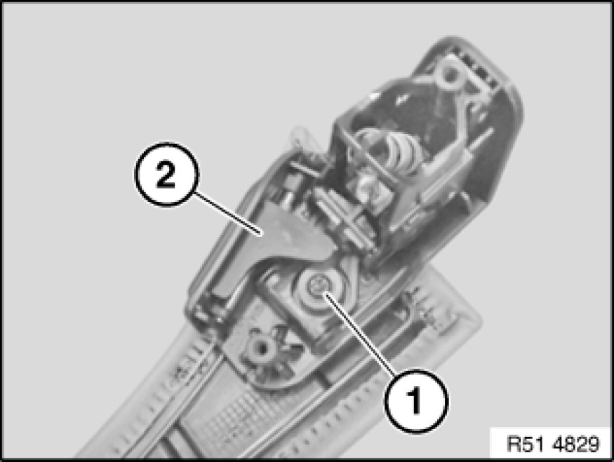 Release screw (1) and remove fastener (2).
