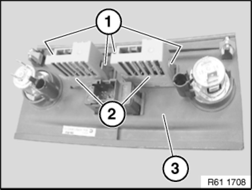 Press locks (1) together and press switches for seat heating (2) out of trim (3).