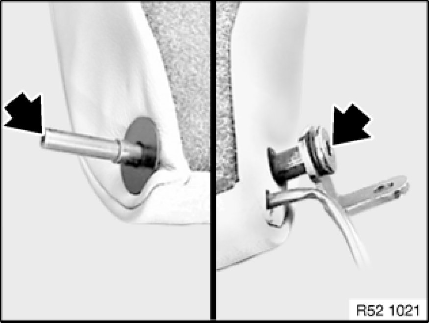 - Remove right backrest Removing and Installing/Replacing Left/Right Rear Seat Backrest (Through-Loading)