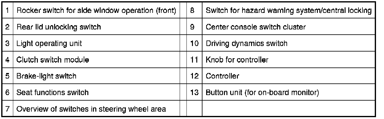 61 31 .. - Overview of switches in driver's area