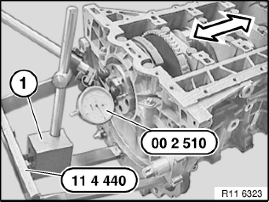 Position special tool 00 2 510 00 2 510 Dial Gauge with Feeler on crankshaft.