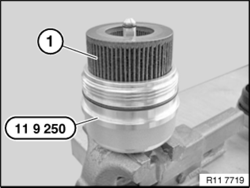 Screw in special tool 11 9 250 11 9 250 Cap with a filter element.
