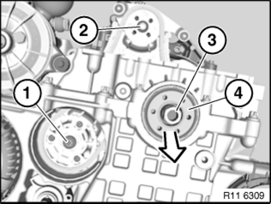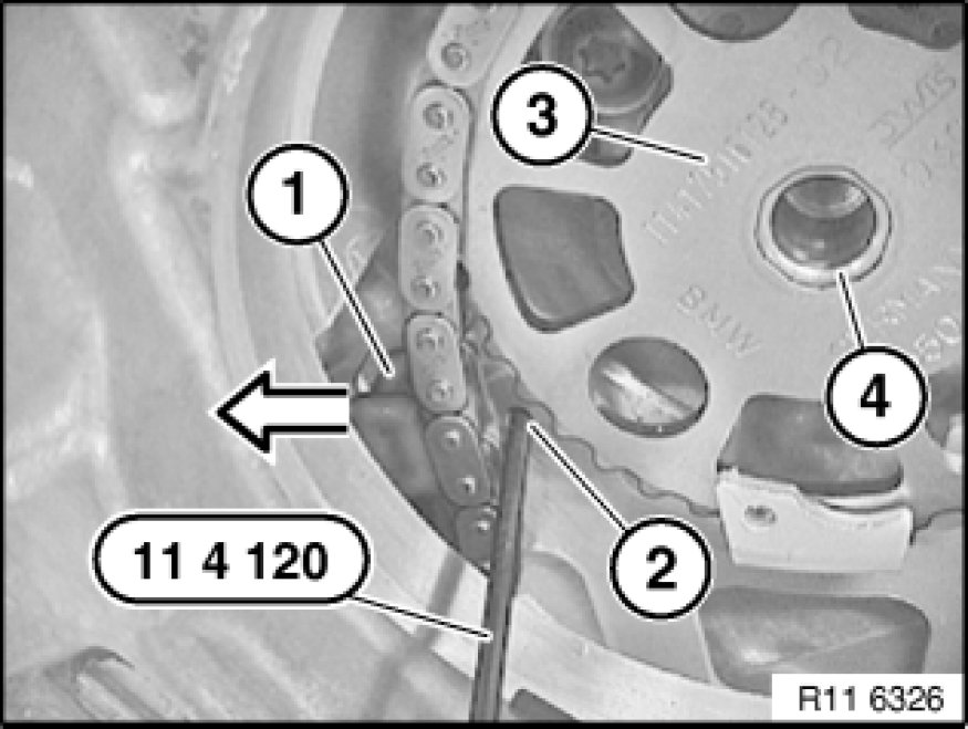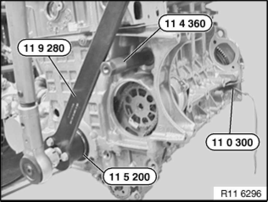 Turn sprocket wheel (3) with central bolt at crankshaft into position until special tool 11 0 290 11 0 290 Holder can be secured.
