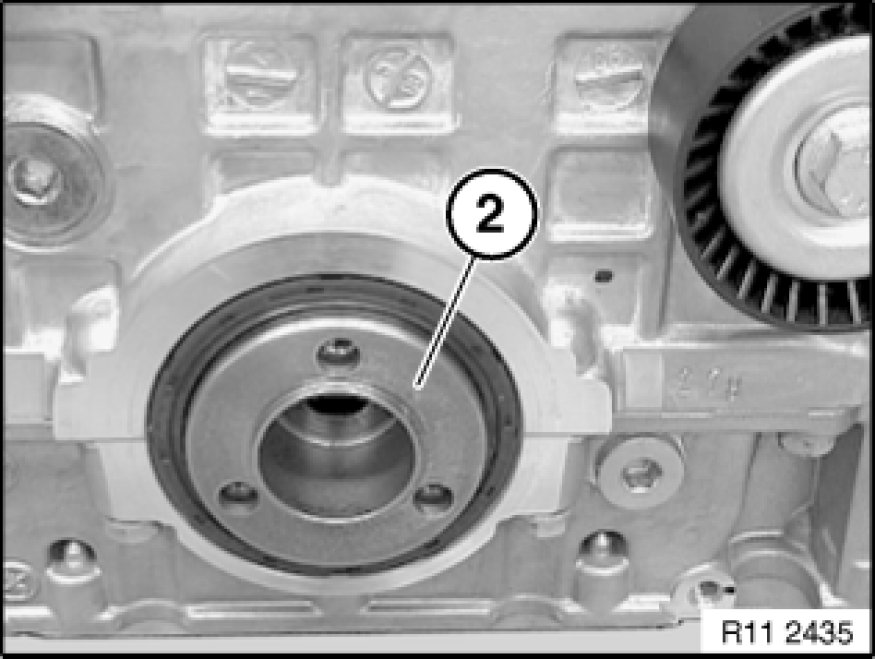 Replace crankshaft radial seal Service and Repair at front.