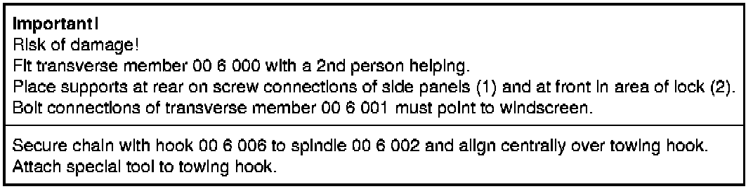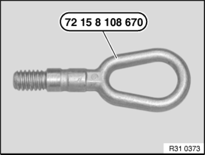 Screw in towing hook (2) and tighten down to approx. 30 Nm.