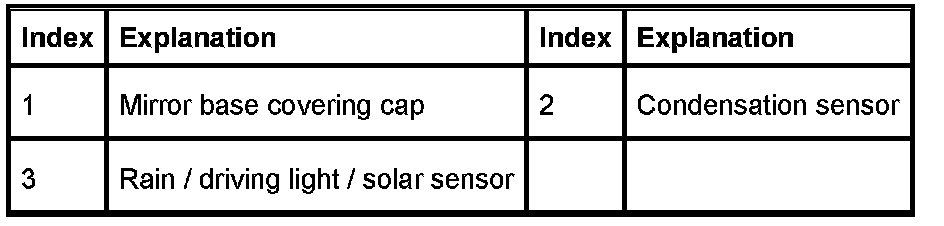 - Rain sensor: consisting of 3 individual sensors arranged in a semicircle around the driving light sensor, picking up the precipitation quantity on the windscreen.