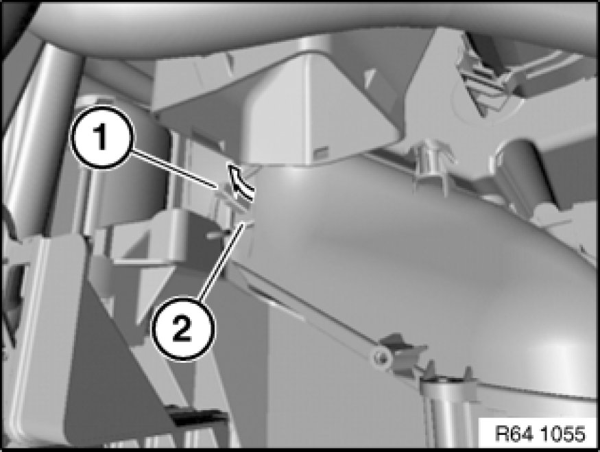 Detach heating duct in rear compartment on left (2) in direction of arrow from air distributor in footwell (3).