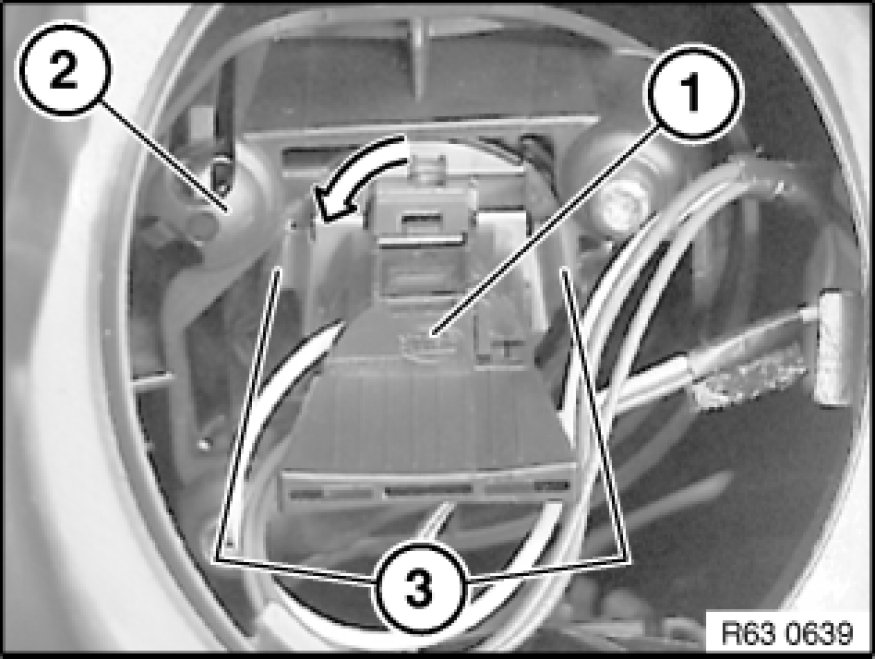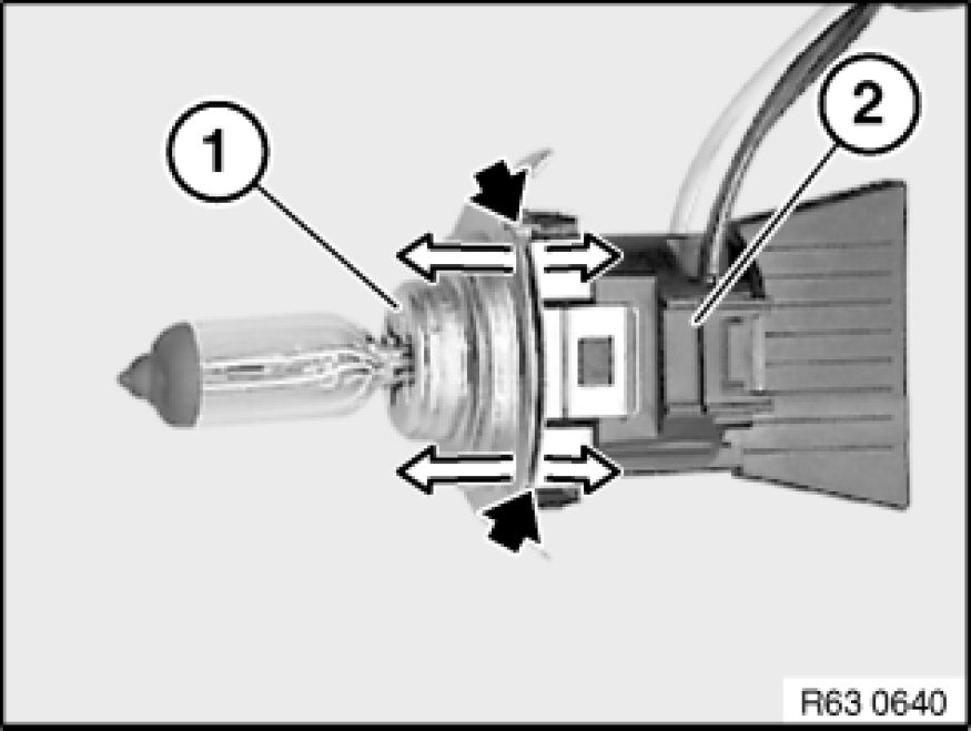 Turn bulb holder (1) counterclockwise and feed together with bulb out of headlight (2).