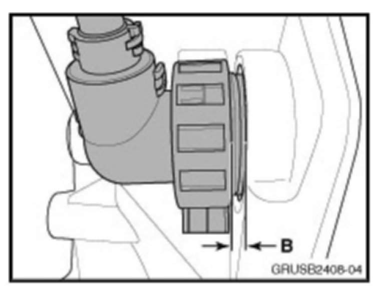 After installation, the correct distance between the transmission harness connector and the housing surface (B) should not exceed 3 mm.