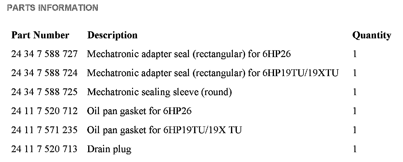 E90, E91, E92, E93 with N52K or N54 and ZF 6HP19TU (6HP21) or 6HP19X TU from SOP up to 02/08