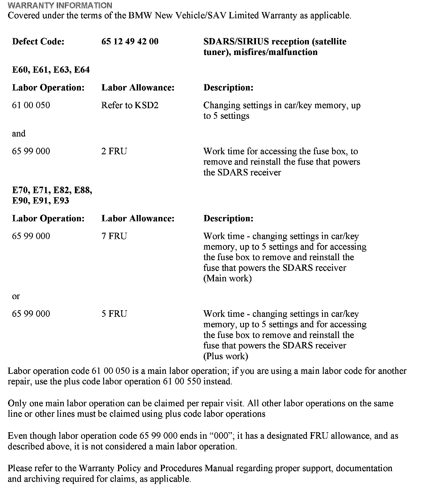 E63, E64 (6 Series) produced from SOP to 5/2009