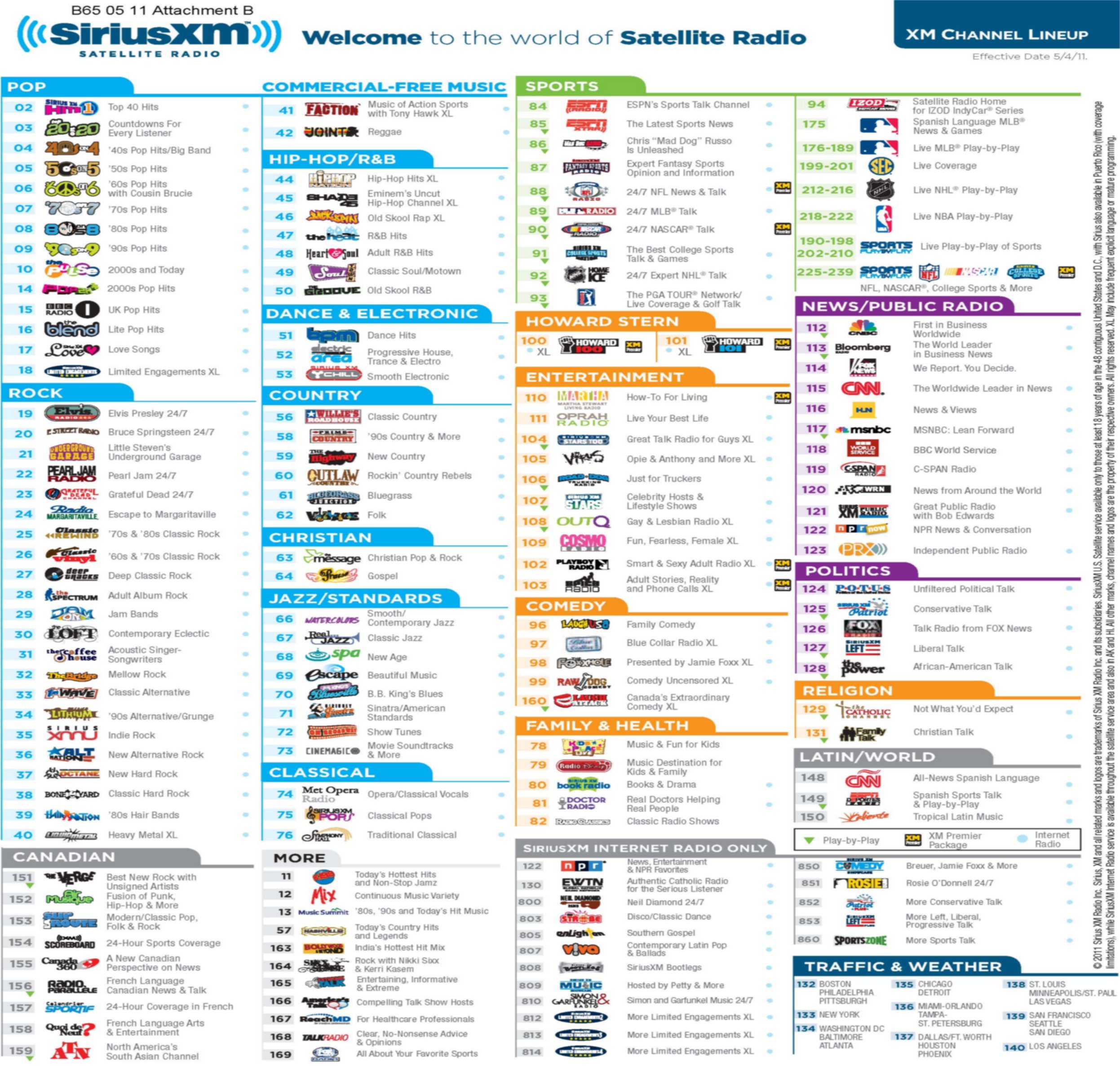 For additional details on available SIRIUS/XM satellite radio packages and the channel lineup please log on to the SIRIUS/XM website: www.siriusxm.com/channellineup