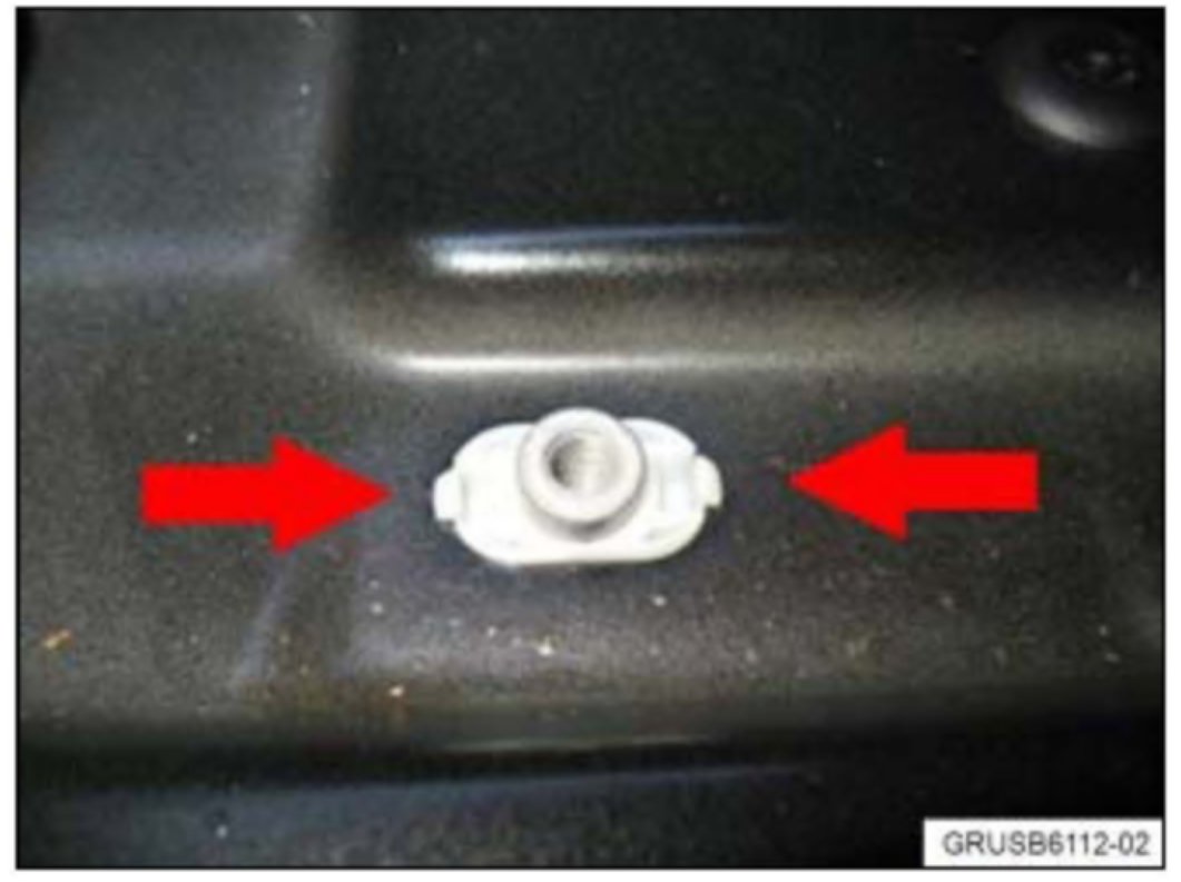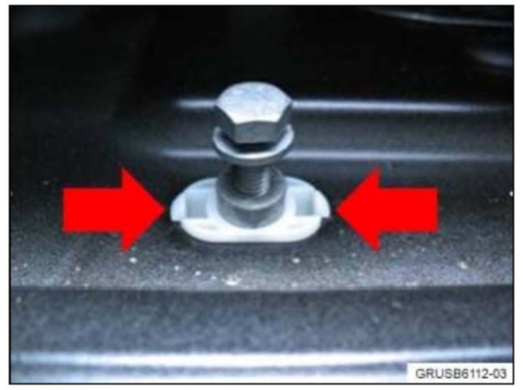7. Screw the previously removed securing bolt into the lug and pull up, so that both retainers on the clip are locked into the sheet metal.