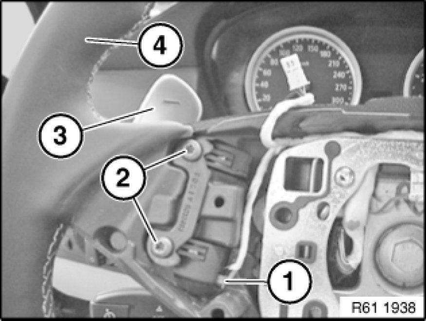 - Make sure shift paddle for SMG transmission (3) is correctly seated on steering wheel (4)