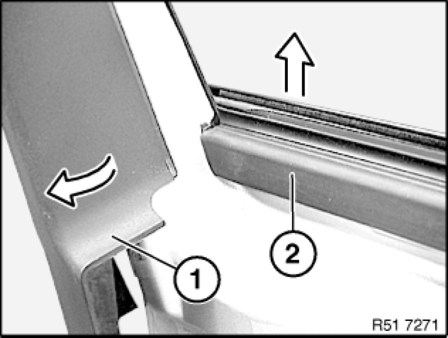 Start at rear with removal of window cavity cover strip (2).