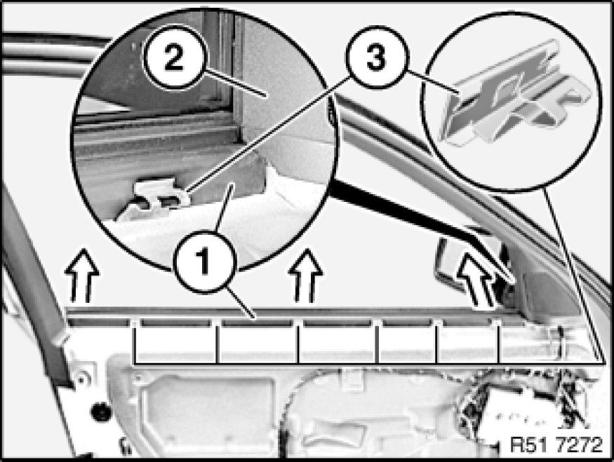 51 21 330 - Removing and installing/replacing window cavity cover strip on inner front door
