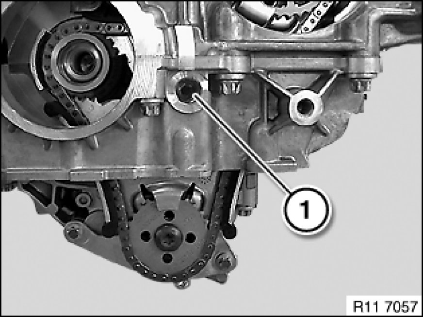 Screw special tool 11 8 650 11 8 650 Holder into crankcase.