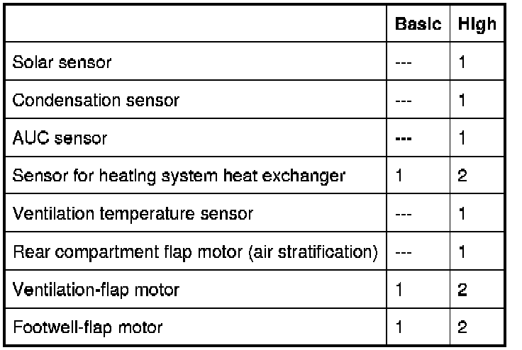 On the IHKA Basic, 6 flap motors control the ventilation flaps. The IHKA High has 9 flap motors due to the left/right separation for the drivers side and the front-passenger side and because of the additional rear compartment flap.
