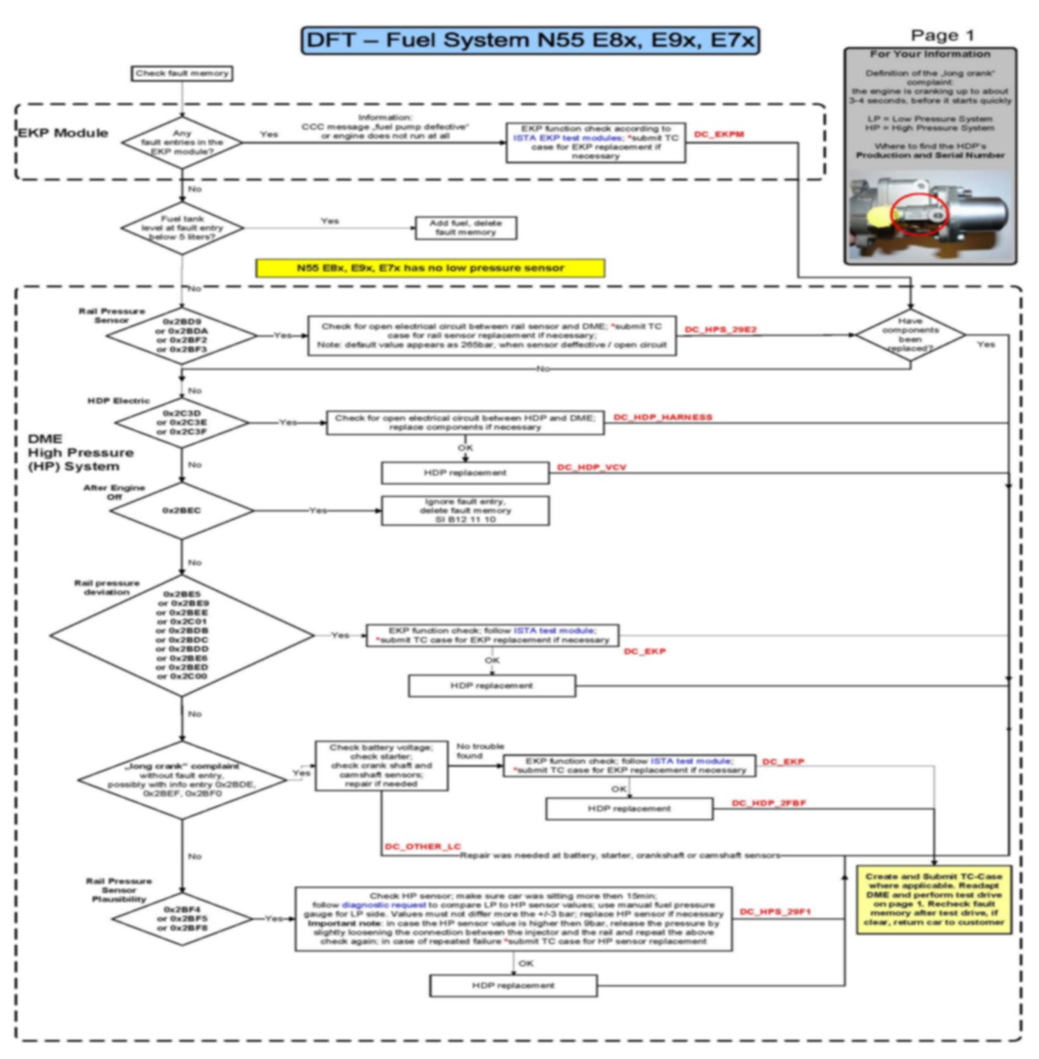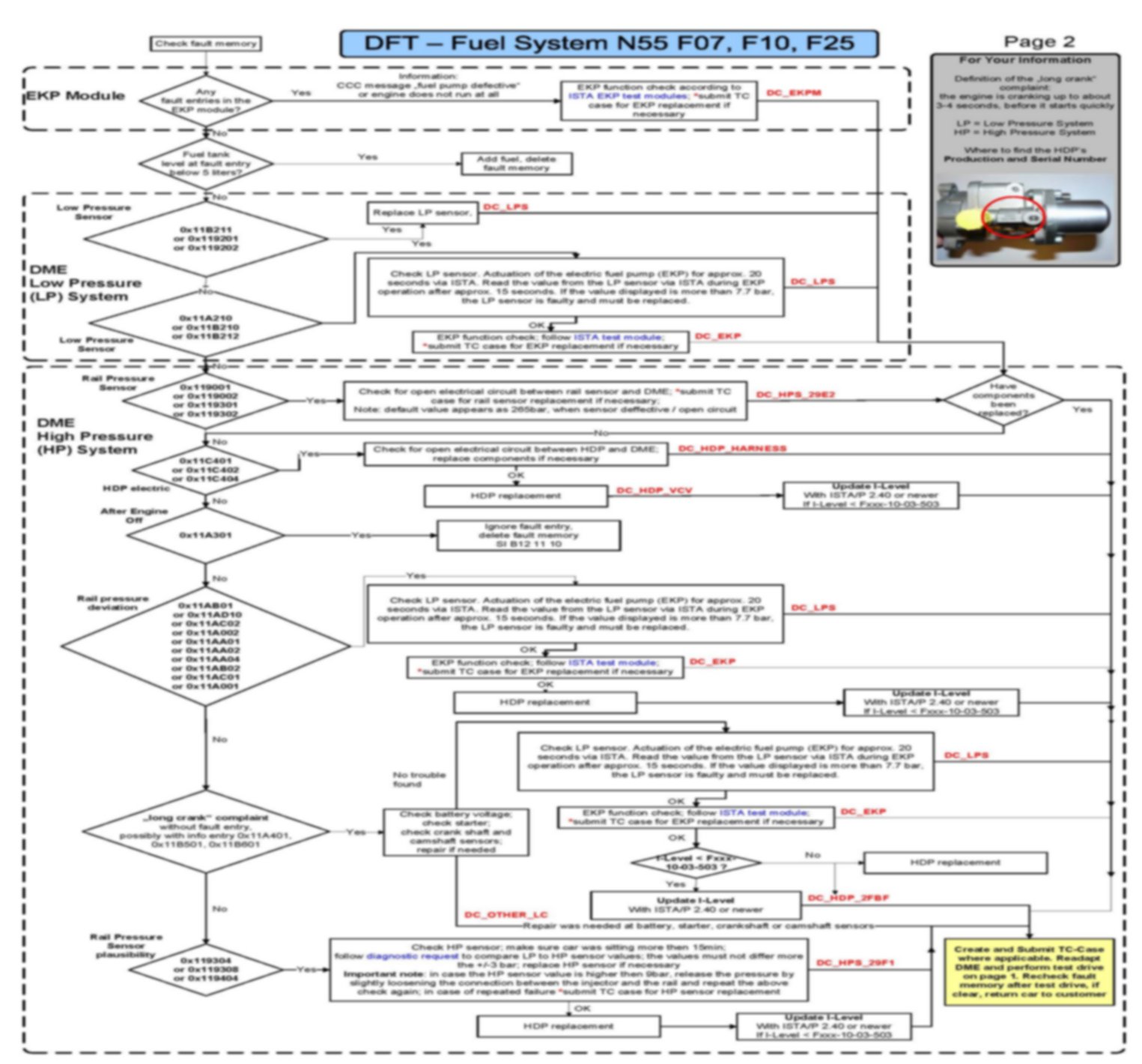 N54, N54T, N55 - Diagnosis for HDP High-pressure Faults