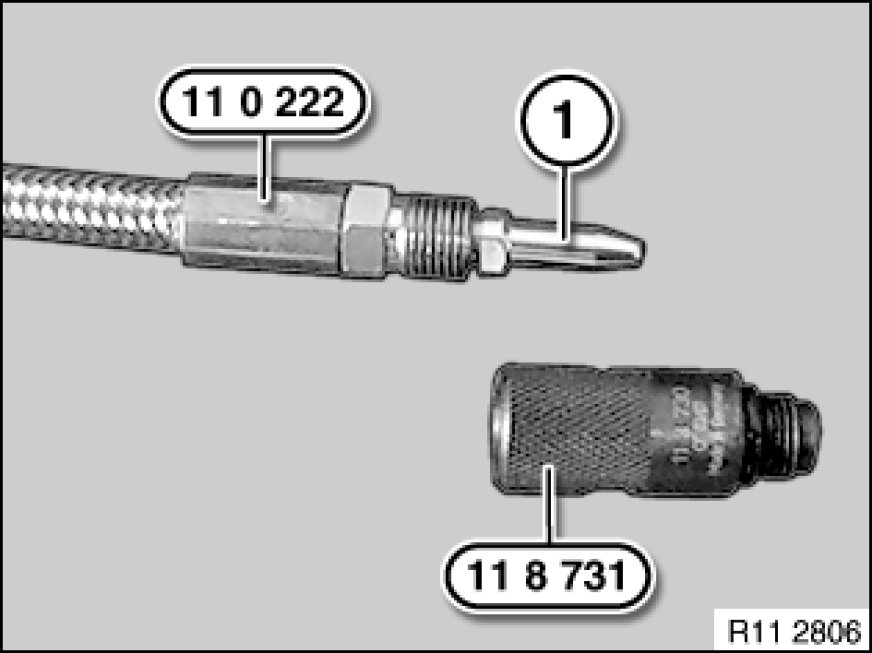 Use adapter lead (1) if the compression pressure is being checked with the BMW diagnosis system.