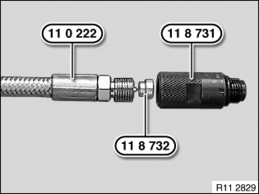 Prepare special tool 11 0 222 in conjunction with 11 8 732 11 8 730 Adapter and 11 8 731 11 8 730 Adapter.