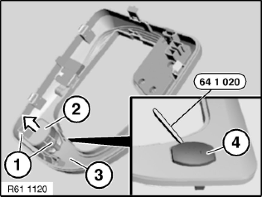 If necessary, lever out actuation trim (4) with special tool 64 1 020 64 1 020 Release Hook and remove.